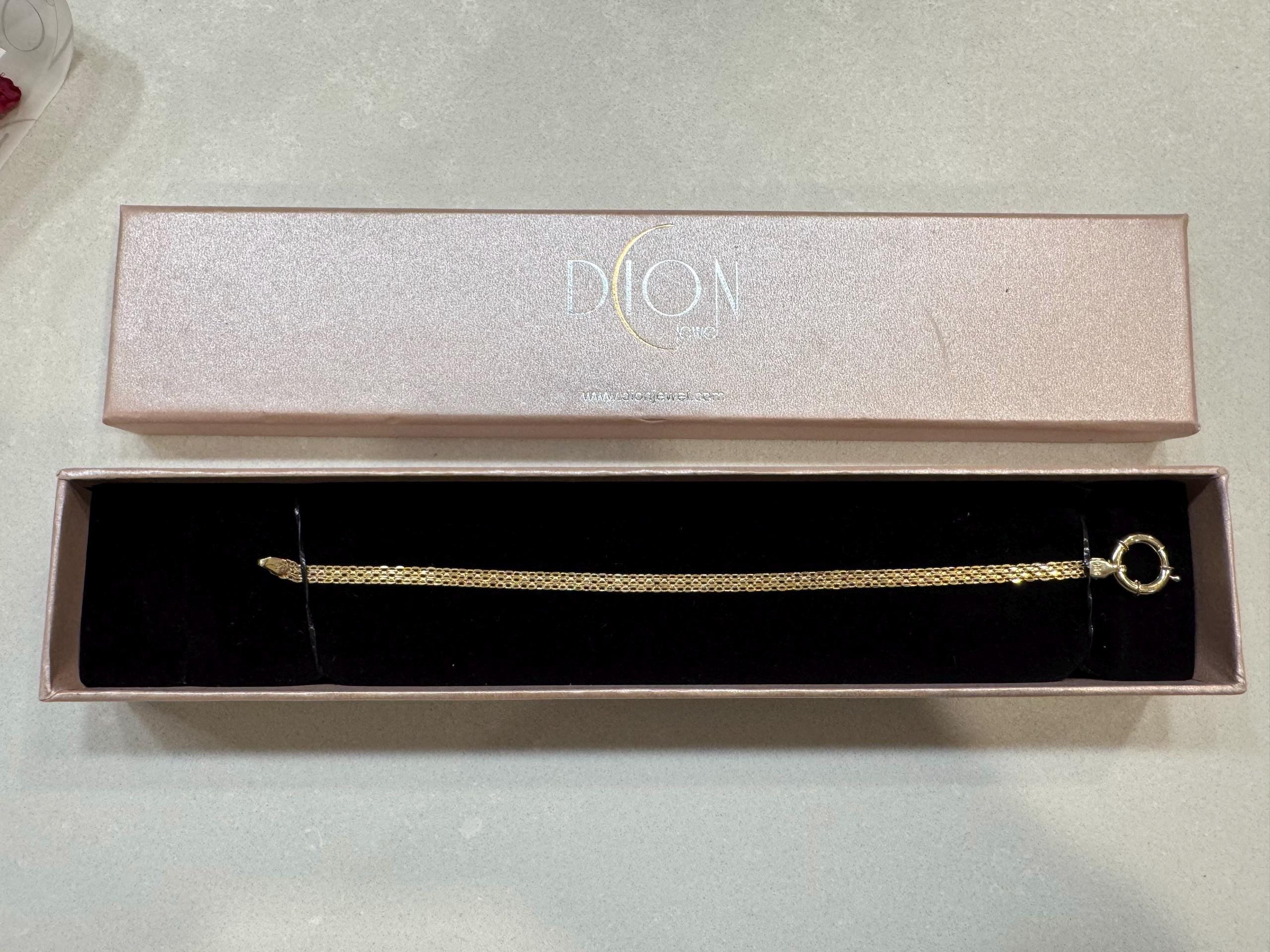 I absolutely love my gold bracelet from Dion! The mesh design is elegant, lightweight, and so comfortable to wear. The circular clasp gives it a modern, unique touch. The packaging was stunning and made the whole unboxing feel extra special. A timeless piece I’ll cherish for years.