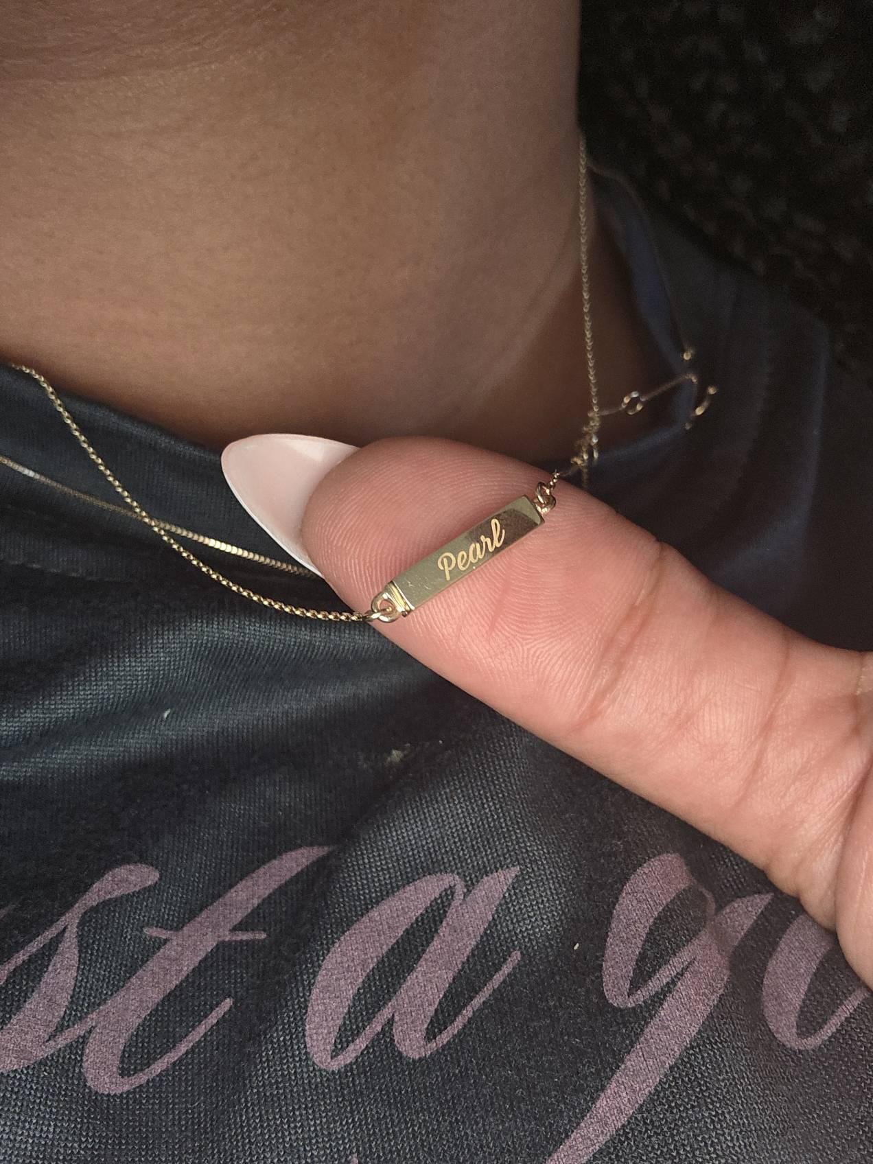 The necklace has a 3D horizontal bar that gives it a clean and sophisticated look while still serving a very personal function. The bar can be engraved, providing a personalized touch to commemorate the individual spirit and memory of the one you want to keep close.