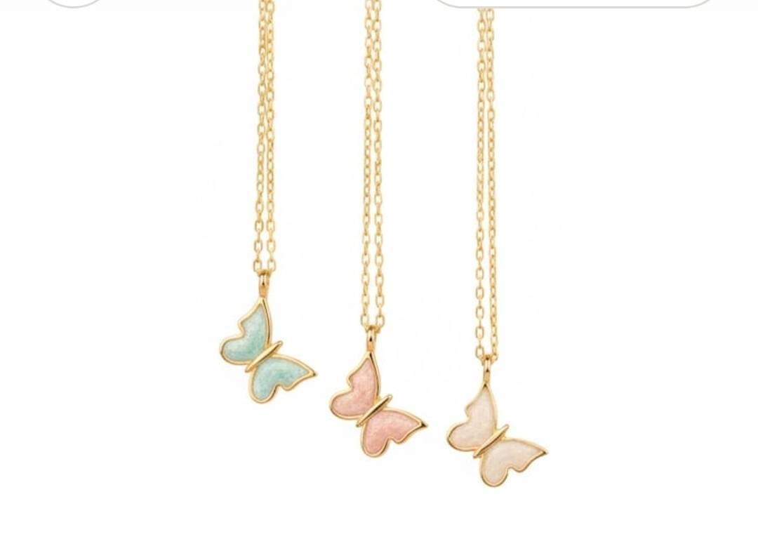 14k solid gold enamel butterfly necklace is available in lots of colors. Also ring, earring and bracelet set items are available to combine for daily use.